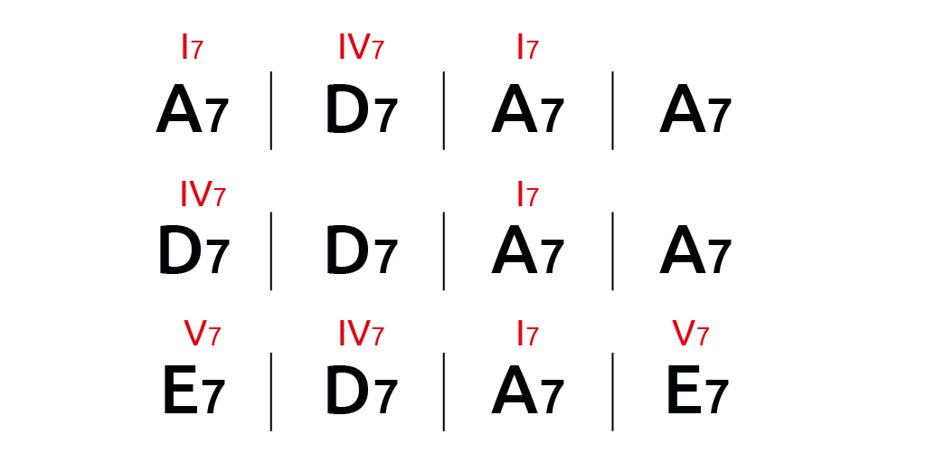 El acorde de séptima dominante es el sonido típico del Blues. Si escuchamos los antiguos bluesmans del Mississippi Delta podemos reconocer enseguida este acorde. A día de hoy seguimos tocando prácticamente todo tipo de Blues con los acordes de séptima dominante. La peculiaridad de este estilo es que nos encontramos frente a una estructura donde todos los acordes son dominantes. En este caso no se considera el acorde como un quinto grado (V), es una excepción al tradicional análisis armónico.